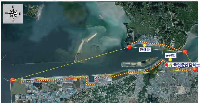 | 군산항 | 북위 35도59분40초, 동경 126도44분41초의 지점(구포34미터산정)으로부터 북위 35도59분50초, 동경126도43분45초의 지점(고치곶) 및 북위36도00분17초, 동경 126도40분08초의 지점(전망산정)으로부터 북위 35도58분25초, 동경 126도31분 33초의 지점(7부투 끝)을 연결한 선 안의 해면 |