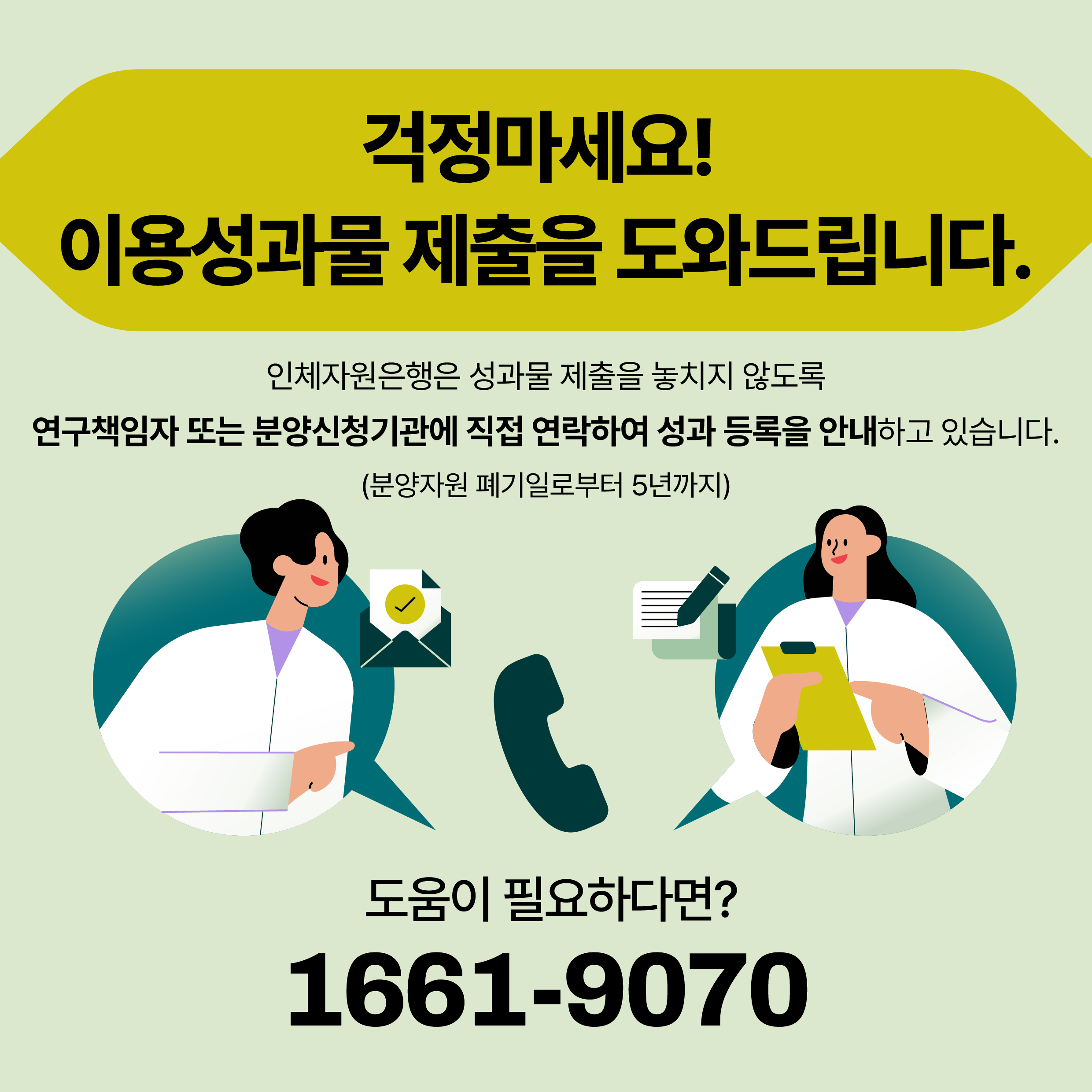 인체자원 활용의 가치를 함께 완성하는 단계, 이용성과물 제출을 소개합니다.