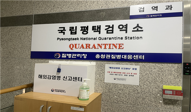 국립평택검역소 (검역소) 평택시 포승읍 평택항만길73 평택항마린센터 2층 국립평택검역소 검역과 안내 약도 안내 사진 (출국장) 청주국제공항 국제여객터미널 출국장(2층) 부근 안내 약도 안내 사진