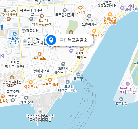 국립목포검역소 (검역소) 전라남도 목포시 해안로177번길 20 목포검역소 안내 약도 안내 사진 (출국장) 전라남도 무안군 망운면 공항로 970-260 무안국제공항 내 국제선 2층 출국 대기장소 부근 안내 약도 안내 사진