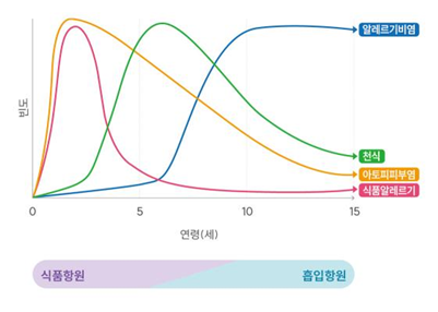- 알레르기질환 특성*에 따라 소아기의 치료 부재·지연 시 성인기 질환 이행을 높이므로 조기 인지·관리가 매우 중요